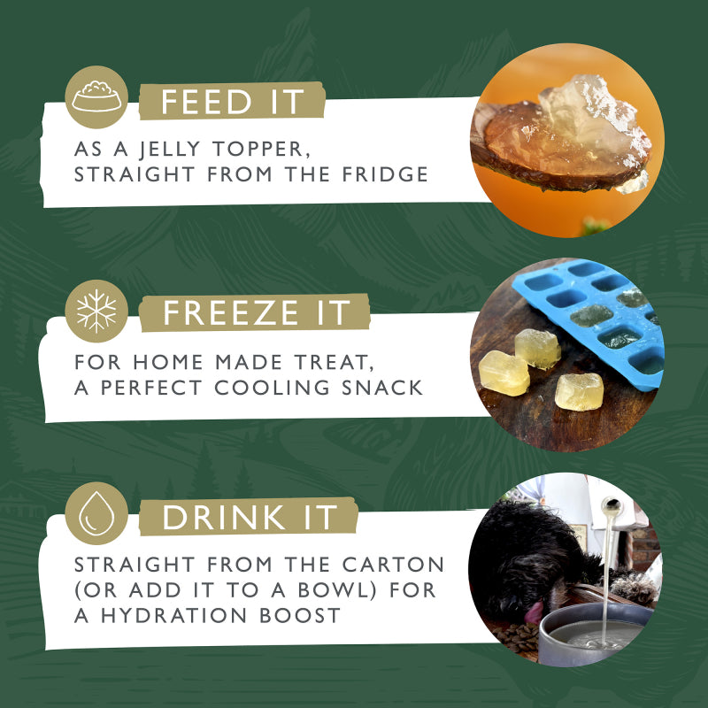 Whether you pour it over kibble, freeze it into treats, or serve it as a hydrating drink, this versatile broth promotes hydration, recovery, and immune support - making it an excellent addition to your pet’s diet.