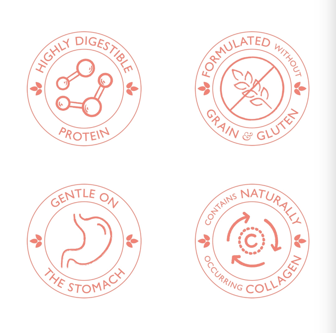 Boasting a 37% Freshly Prepared Salmon and Freshly Prepared Pheasant, cooked gently with a natural enzyme, for gentle digestion and optimum absorption of nutrients. Creating perfect-sized peptides, that are easily absorbed, then transported to where they are needed most for the body to thrive.