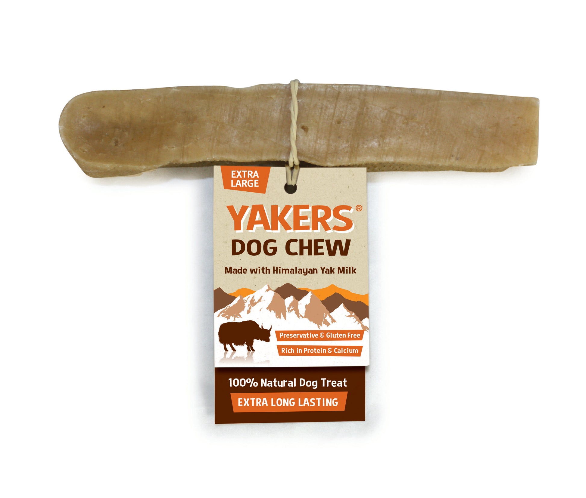 Yakers are dog chews that are made from a mix of skimmed Yak and Cow milk. A very small amount of lime juice and salt is added to coagulate (harden) the milk, which is then compressed into blocks and smoke dried for 28 days to give the chews their unique flavour.